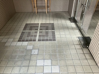 今回は、マンションエントランスの床タイルの高圧洗浄を行いました。