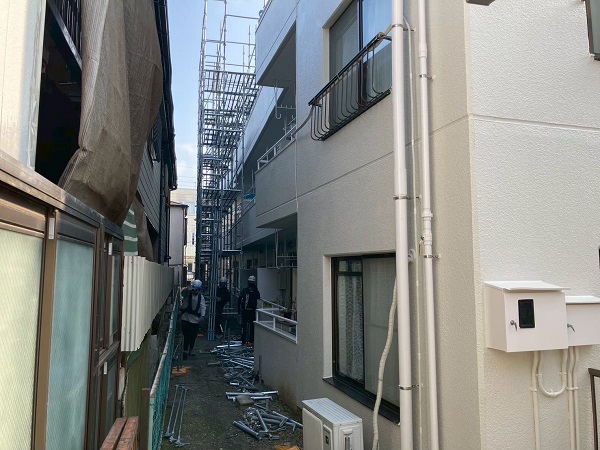 神奈川県川崎市多摩区 マンション大規模修繕工事 施工場所神奈川県川崎市多摩区規 模地上3階建て工 期2025/4/7~2025/6/30施工内容シーリング工事、下地補修工事、塗装工事、タイル工事、防水工事、、洗浄工事、仮設工事、その他工事 大規模修繕工事一覧に戻る 施工前 仮設組立完了 シーリング施工中 シーリング施工中 下地補修施工中 下地補修施工中 タイル施工中 塗装施工中 バルコニー防水施工中 バルコニー防水施工中 足場解体中 施工完了